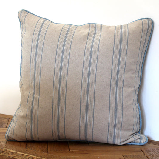 Blue Stripe Square Linen Cushion With Blue Denim Reverse