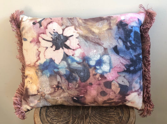 Fringed Indigo Floral Cushion.