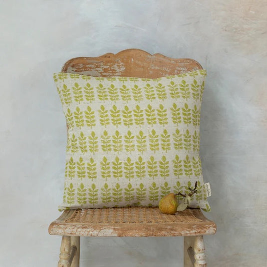 Green Leaf Print Square Cushion