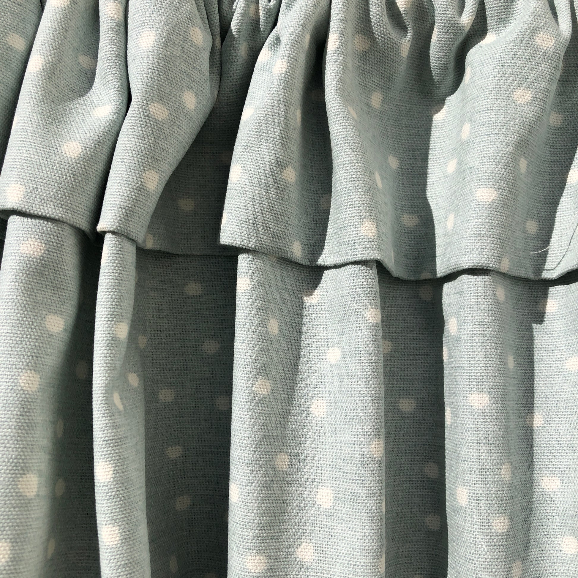 Duck Egg Dotty Hideaway Cupboard Curtain with Flop Over Frill.