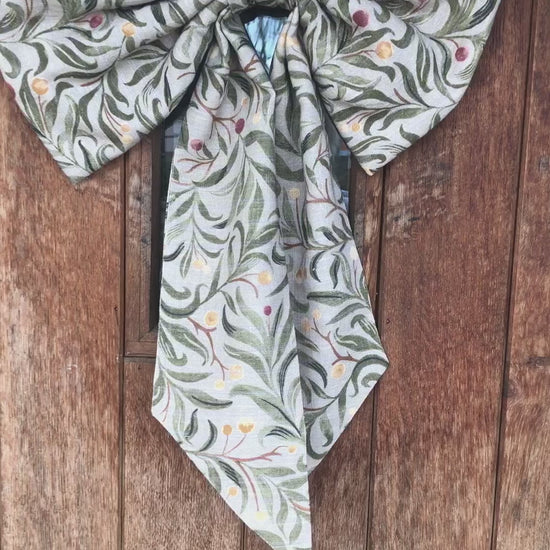 Crafted from luxurious linen/cotton and comes with a hanging ribbon.