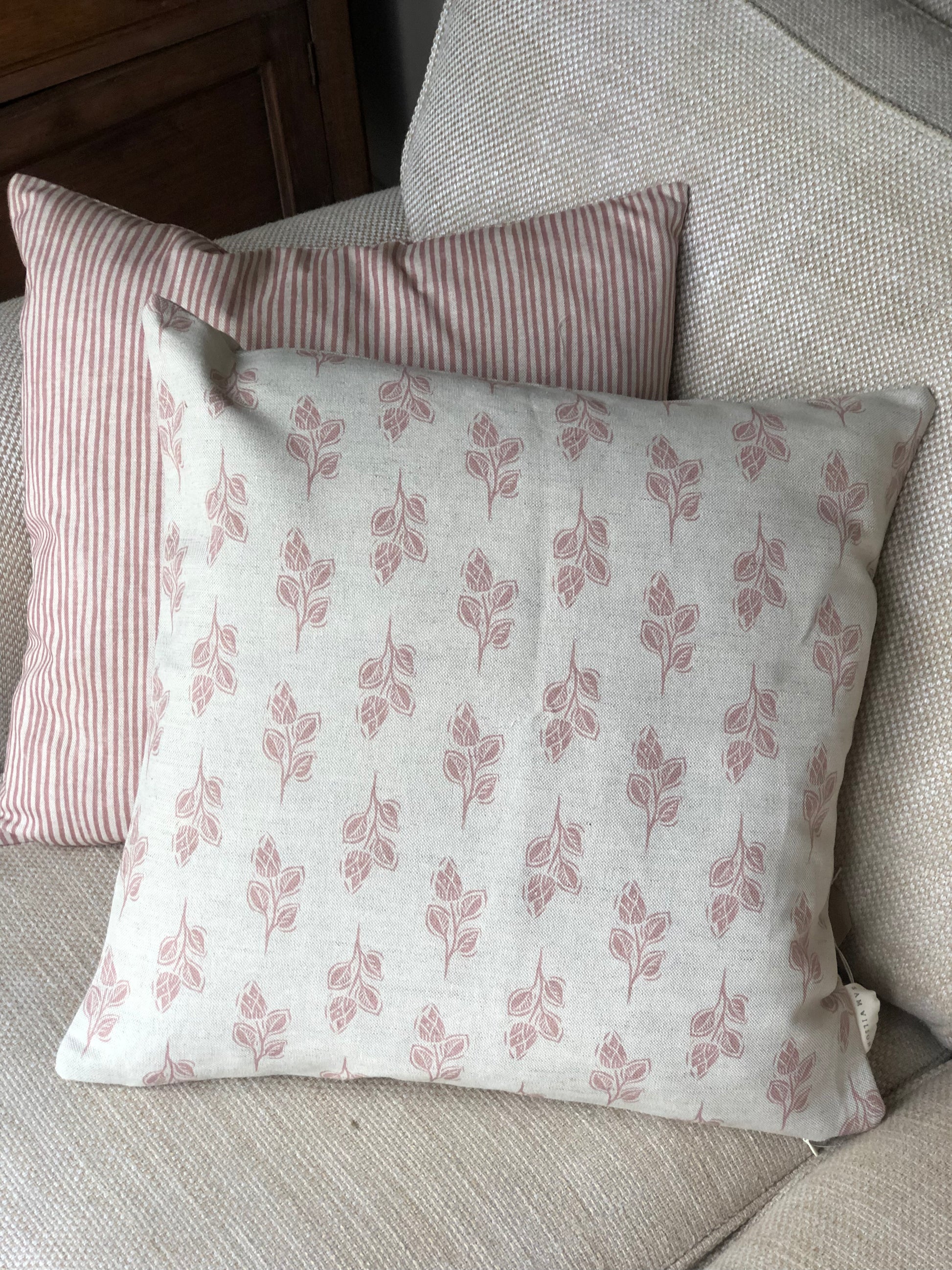 Expertly crafted in England. This dusty pink floral square linen union cushion comes complete with a feather inner. An ideal way to update any living space. Fabric repeats on reverse.