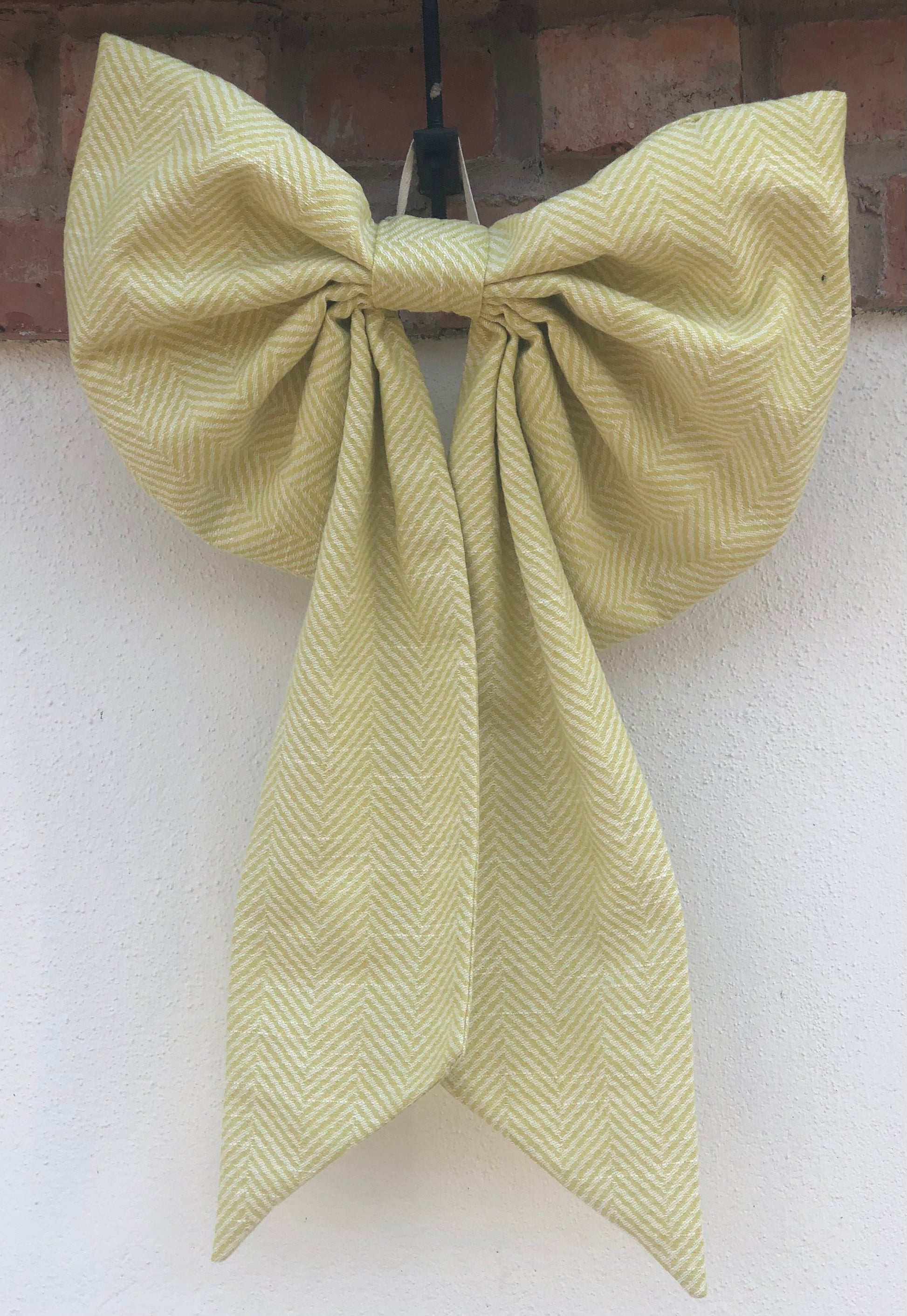 Our gorgeous Lime Herringbone Spring Bows are handmade in England from a beautiful lime coloured linen fabric.